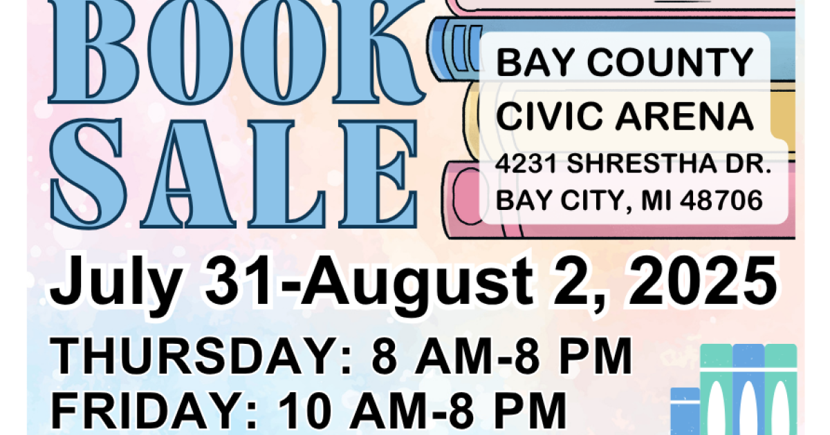 Our 50th Annual Used Book Sale is right around the corner! Get ready to browse thousands of items July 31-August 2, 2025 in our biggest sale of the year! All proceeds from the book sale will be used by the Friends of the Bay County Library System to buy equipment, materials, and services for the public not made possible through the library system's operating budget. Earning from previous sales have funded children's reading programs, library publications, visits by authors, and community meeting room furniture.