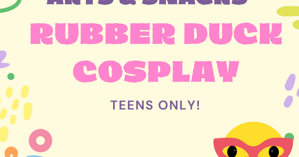 Join us as we use paint, tape and fabric to give boring rubber duckies some new style. Also, we’ll have snacks.
