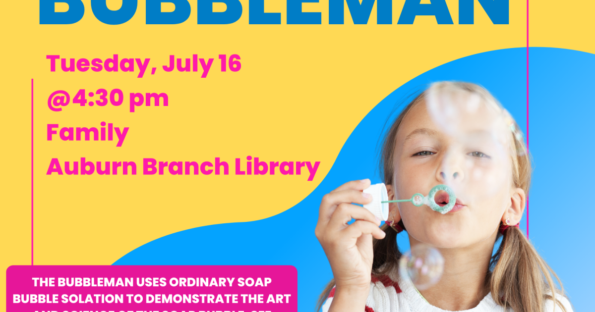 The Bubbleman uses ordinary soap bubble solution to demonstrate the art and science of the soap bubble. See volcano bubbles, tornado bubbles, kaleidoscope bubbles, square bubbles, merry-go-round bubbles, and more!