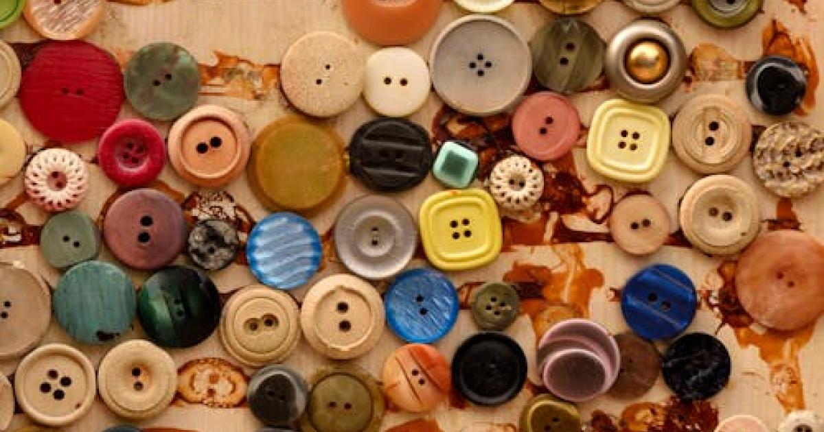 Create a cute mitten-themed winter decoration using a picture frame and buttons.
