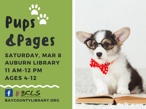 Read to a therapy dog or dog in training in a one-on-one session. You will be called to schedule your session the week of the program. Children ages 4-12 are invited to attend.