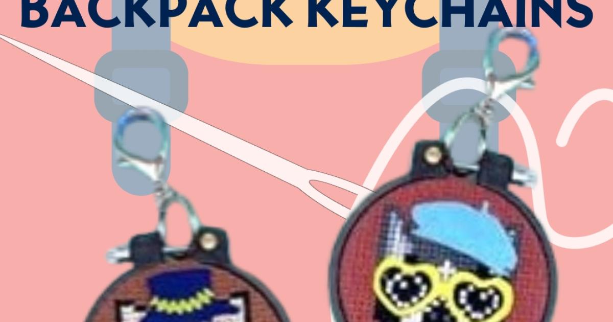Try your hand at cross stitch by learning how to do stitches on a stamped pattern and be able to make your own cross stitch backpack keychain!