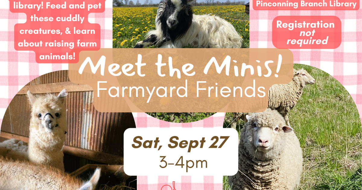 Animal lover? Come over to the Pinconning Branch Library and meet some real life mini farm animals! Pinni Mini Farm will be bringing some fluffy friends all the way here to the library. Feed and pet these cuddly creatures, as well as learn more about what it means to raise farm animals!
