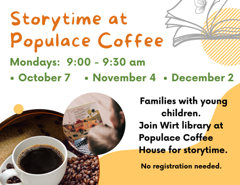 Families with young children. Join the Wirt library downtown at Populace Coffee House for storytime.