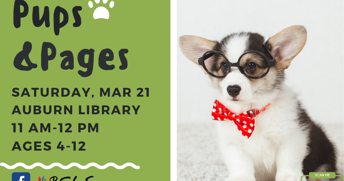 Read to a therapy dog or dog in training in a one-on-one session. You will be called to schedule your session the week of the program. Children ages 4-12 are invited to attend.