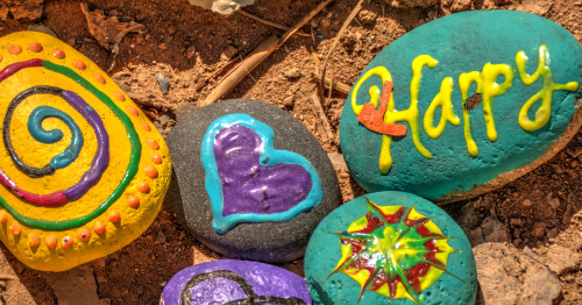 Paint rocks to leave in the Sage Word Art Garden. Wear old clothes, this could get messy.