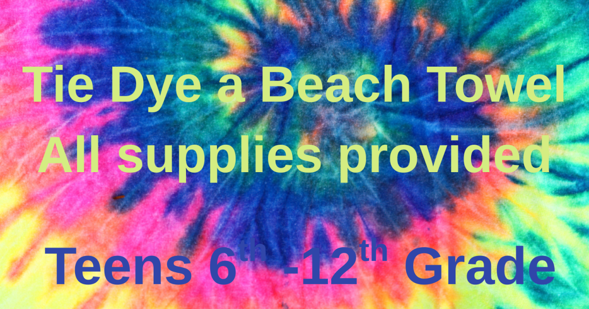 Teens in grades 6-12 are invited to tie dye a beach towel on the lawn- all supplies provided!