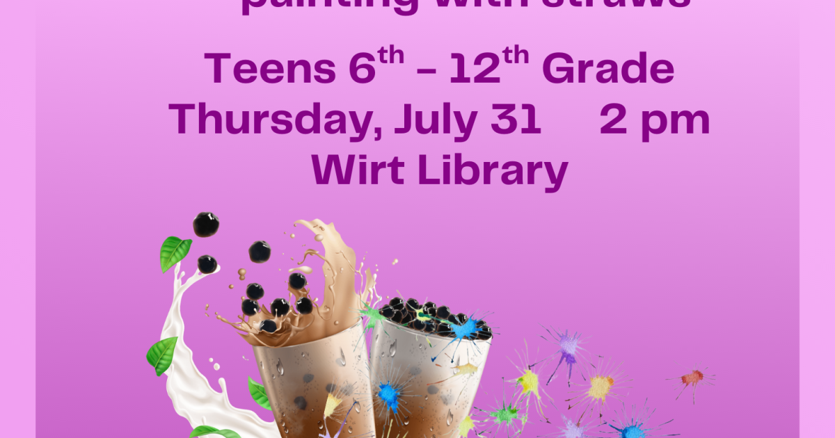 Teens in grades 6 -12 are invited to join us to enjoy a bubble tea while painting with straws- all supplies provided!