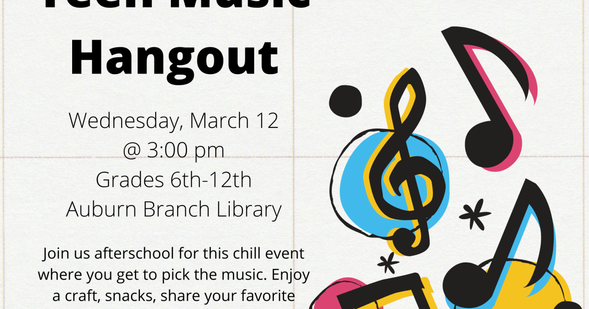 Join us afterschool for this chill event where you get to pick the music. Enjoy a craft, snacks, share your favorite musical artists, and feel free to bring your instrument to perform a song.