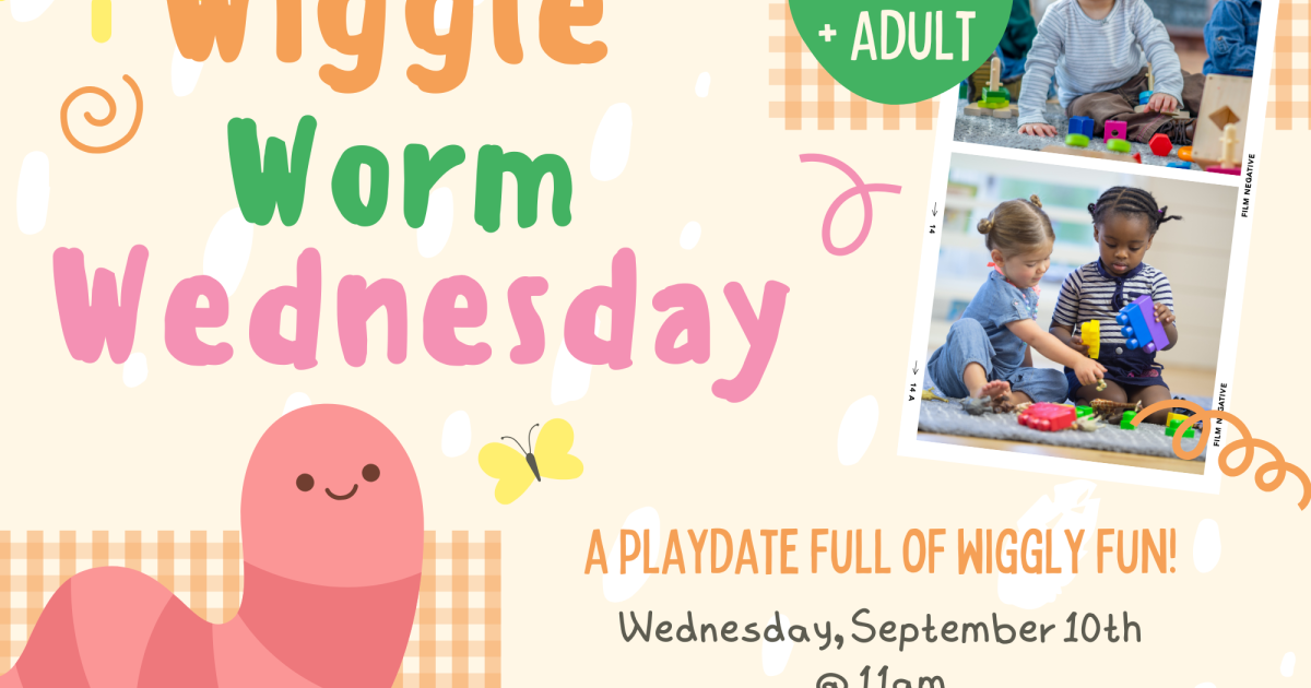 Wiggle Worm Wednesday is a joyful a playdate designed for children 0-5 and their grown-ups! Each session is packed with wiggly fun, playful learning, and social connection. Drop in for wiggly fun!