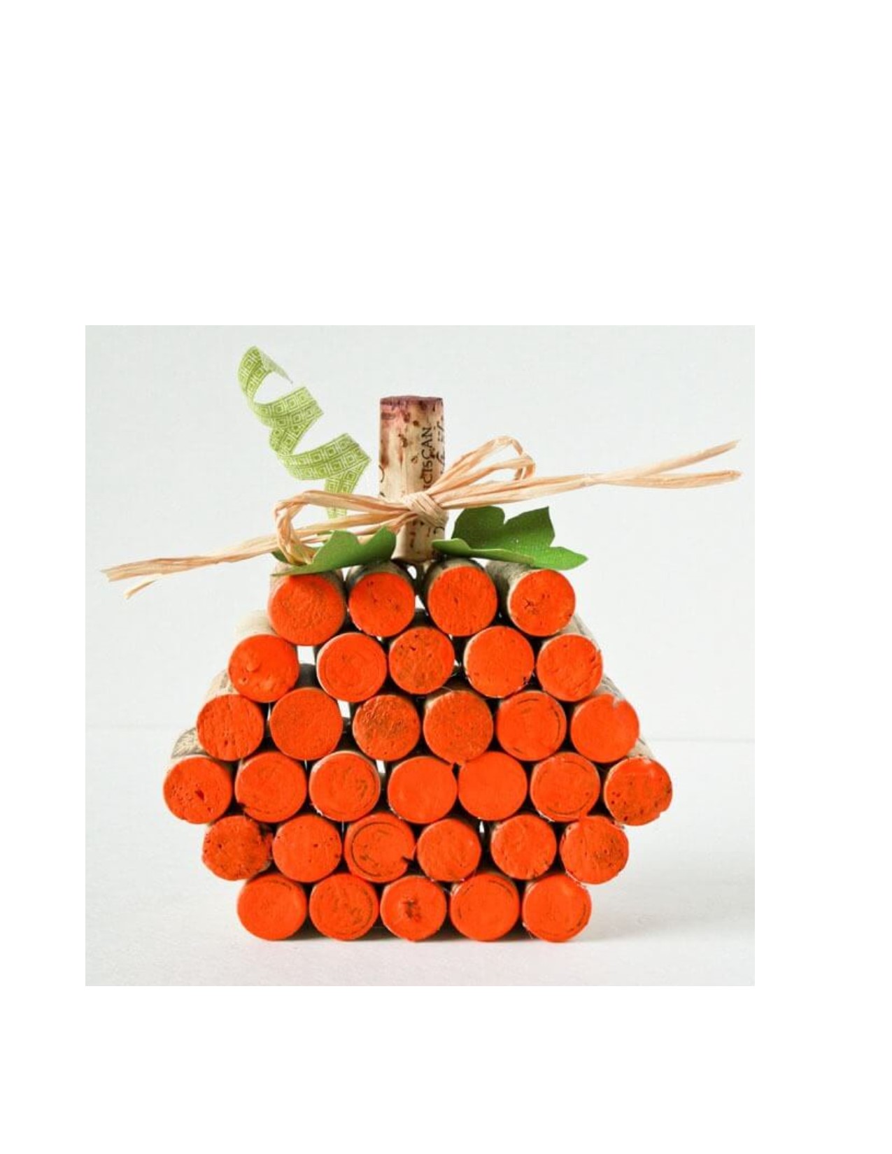 Paint and glue wine corks to create a festive pumpkin decoration.