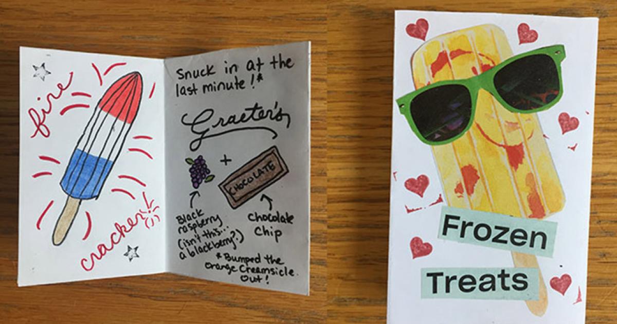 Pronounced “zeen,” a zine is a mini-book made by folding or stapling paper and filling it with fun stuff.