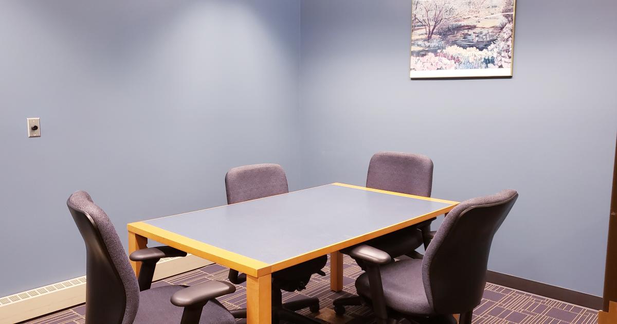 The study room is intended to provide a space for individuals or small groups to conduct quiet, semi-private activities such as reading, studying, or small meetings that are not open to the public.